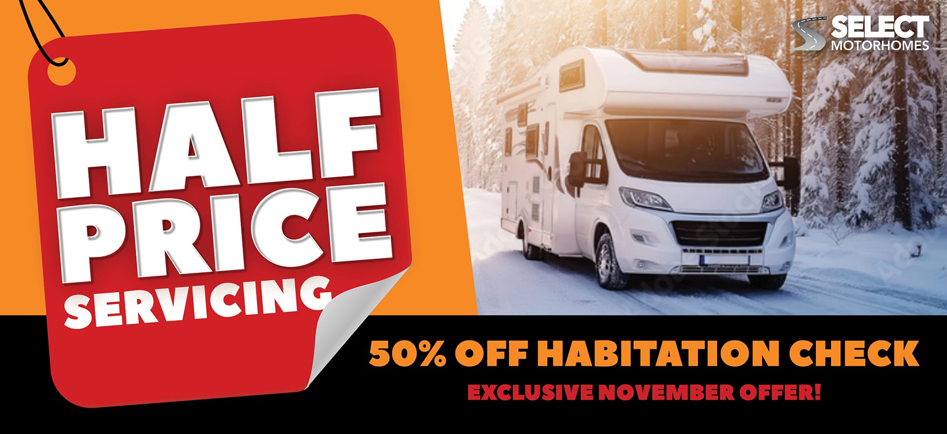 Take advantage of our November offer at Select Motorhomes – get HALF PRICE Habitation Checks when booked this month!